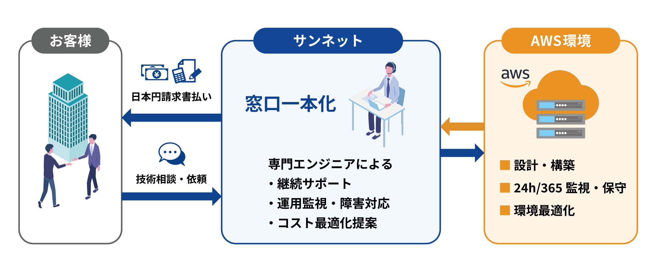 - バラバラになりがちな請求・構築・運用の窓口を一本化し、管理の煩雑さを解消