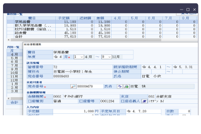 - 支給費目毎に保護者口座や学校口座に振り込み先を変更できます。